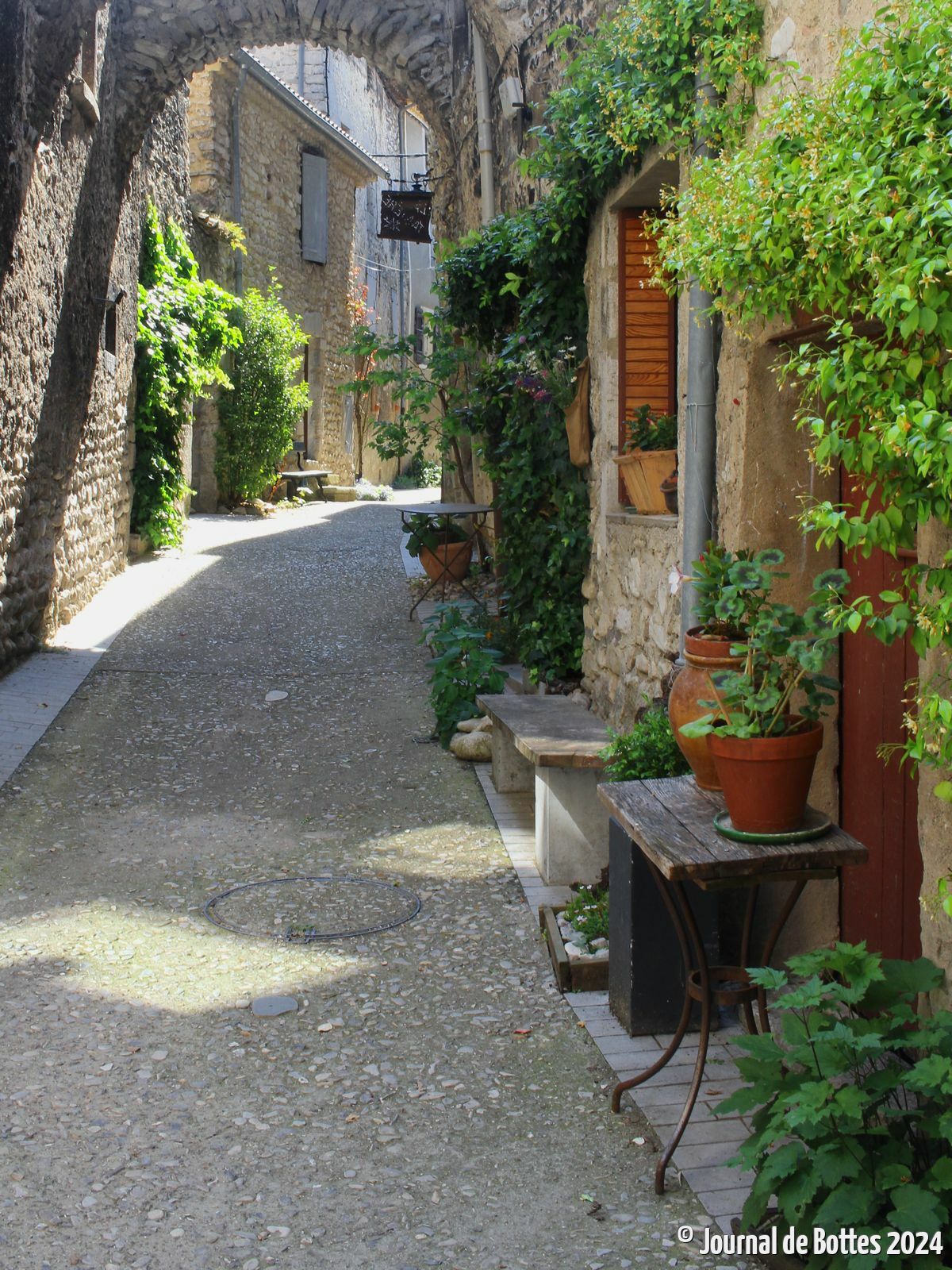 Bientôt 14h, retour au camping : nous plantons la tente dans un grand espace vert réservé aux itinérants, puis partons à pied vers le quartier termal. Cet après-midi, nous nous offrons le spa local, avec hammam, sauna, sceau d'eau froide (yes !), piscine avec courant, et piscine avec buses et bulles... ça ne vaut pas Yverdon, mais c'est déjà d'un bon niveau, et l'entrée non seulement n'est pas excessive, mais vaut pour tout l'après-midi, sans autre contrainte de temps que l'heure de fermeture. C'est donc bien rincés que nous ressortons... nous avons à peine le temps de nous balader dans le vieux centre ville aux allures médiévales, que nous voici à nouveau sous la pluie. N'y ayant pas trouvé de boulangerie, nous faisons sur le chemin du retour un nouvel arrêt au Bi1 pour acheter du pain. Au vu des trombes d'eau qui tombent dehors, nous y restons jusqu'à l'heure de fermeture - car météo France annonce une accalmie d'ici à 15 minutes... le gars de la sécurité n'y croit pas, mais malgré tout la magie opère : quand nous quittons les lieux avec les derniers clients, la pluie est effectivement en train de se calmer. Nous passerons malgré tout toute la soirée dans la salle réservée aux randonneurs itinérants. Elle est assez petite, mais cosy et bien aménagée : une bonne quinzaine de places assises et confortables pour manger, un gros sofa, du wifi gratuit et plein de documentation sur quoi faire dans la région. Nous profiterons d'une légère accalmie dans la soirée pour aller nous coucher, mais il pleuvra encore toute la nuit.